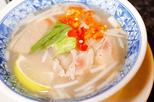 不過我點了一份越南生牛肉湯,微微的酸帶點辣,熱熱的很好喝,