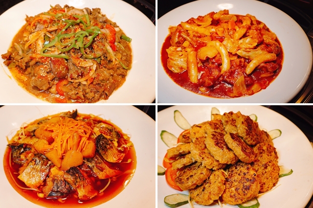 韓式炒牛肉、春川炒辣雞、起司泡菜豬肉小圓餅與馬鈴薯燉青花魚。