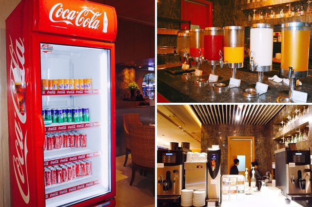 無限供應的蘇打飲品、果汁類與咖啡、茶等熱飲...
