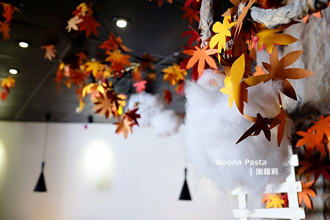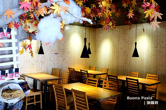 不管哪個角度,都好美好美,伴隨著鵝黃色的溫暖燈光,別以為平價料理就不能燈光美氣氛佳,Buona Pasta 完全巔覆對平價義大利麵的傳統裝潢呢!