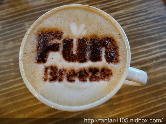 熱拿鐵,上面有Fun Breeze 放風餐廳的拉花好漂亮喔!