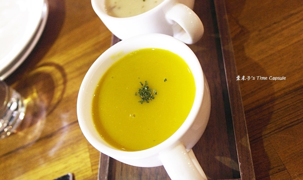 分別是"一百年南瓜濃湯"和"義式巧達湯",