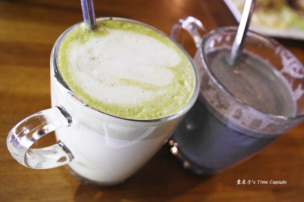 附餐飲品-宇治抹茶牛奶那堤(95元)、黑芝麻杏仁飲(95元)