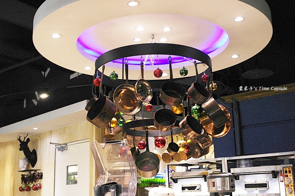 頭頂上面還掛個大大小小的銅色鍋子,還真是頗具特色呢!