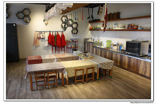 於是吃飽飯,我們就去烘培教室做餅乾了,這才發現這裡有一間超夢幻的親子廚藝教室場地。