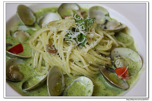 青醬蛤蠣義大利麵(NT280),孩子們幾乎必點的蛤蠣麵,其實我有點忘了口感,但孩子們都吃光了。
