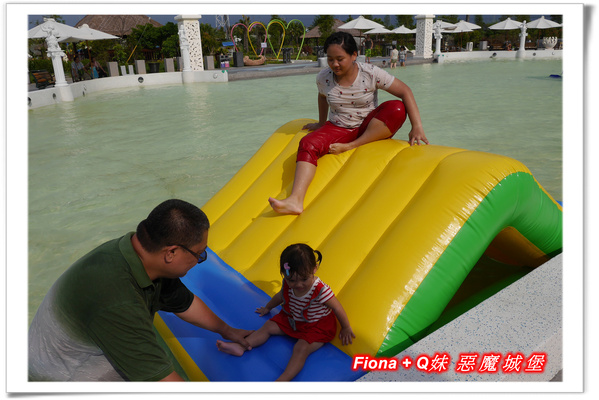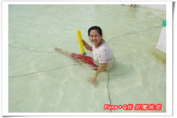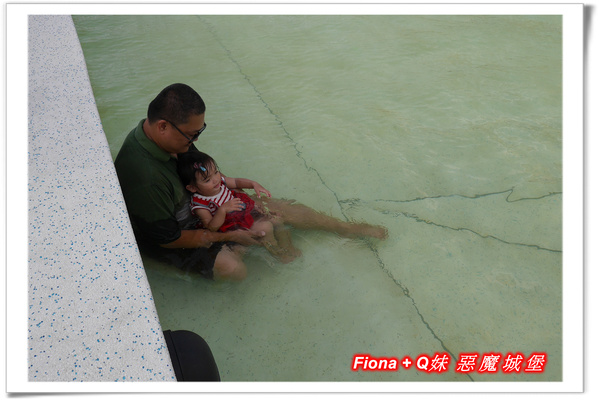 Fiona玩得很瘋狂,Q妹還是有點閉俗,大多都是黏在老爸身邊,不然就是自己坐在池畔邊踢踢腳,應該是因為還太小才這麼淡定吧 !