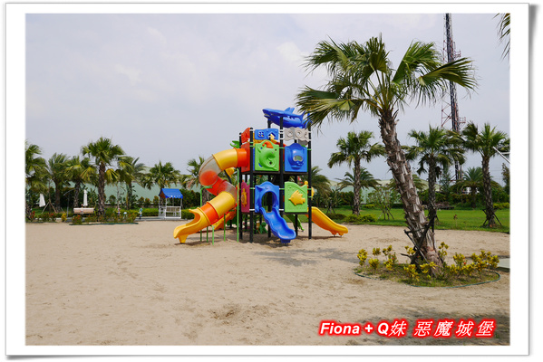 沙池中央還有一座溜滑梯,讓姊妹倆一見到就開心極了,也顧不得烈日當空就衝去溜了,不過溜了一回就放棄啦 ! 因為有點燙燙低 ! 呵呵 !