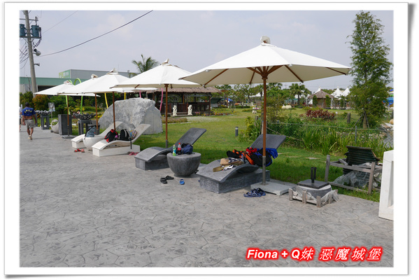 後方庭園真讓人覺得豁然開朗,棕櫚樹、綠草地、茅草屋涼亭、休憩躺椅.....,各式各樣充滿南洋風味的擺設,營造出彷彿正置身峇里島的景緻,一走入就有悠閒放鬆的感覺呢 !