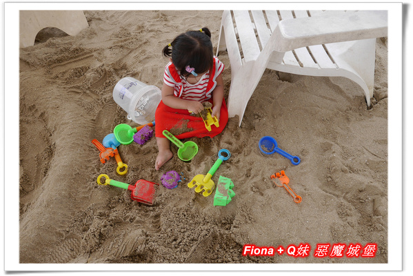 沙池裡還有可愛的小椅子給小朋友們坐,Q妹坐在上頭好像感覺挺好玩的樣子,呵呵 !