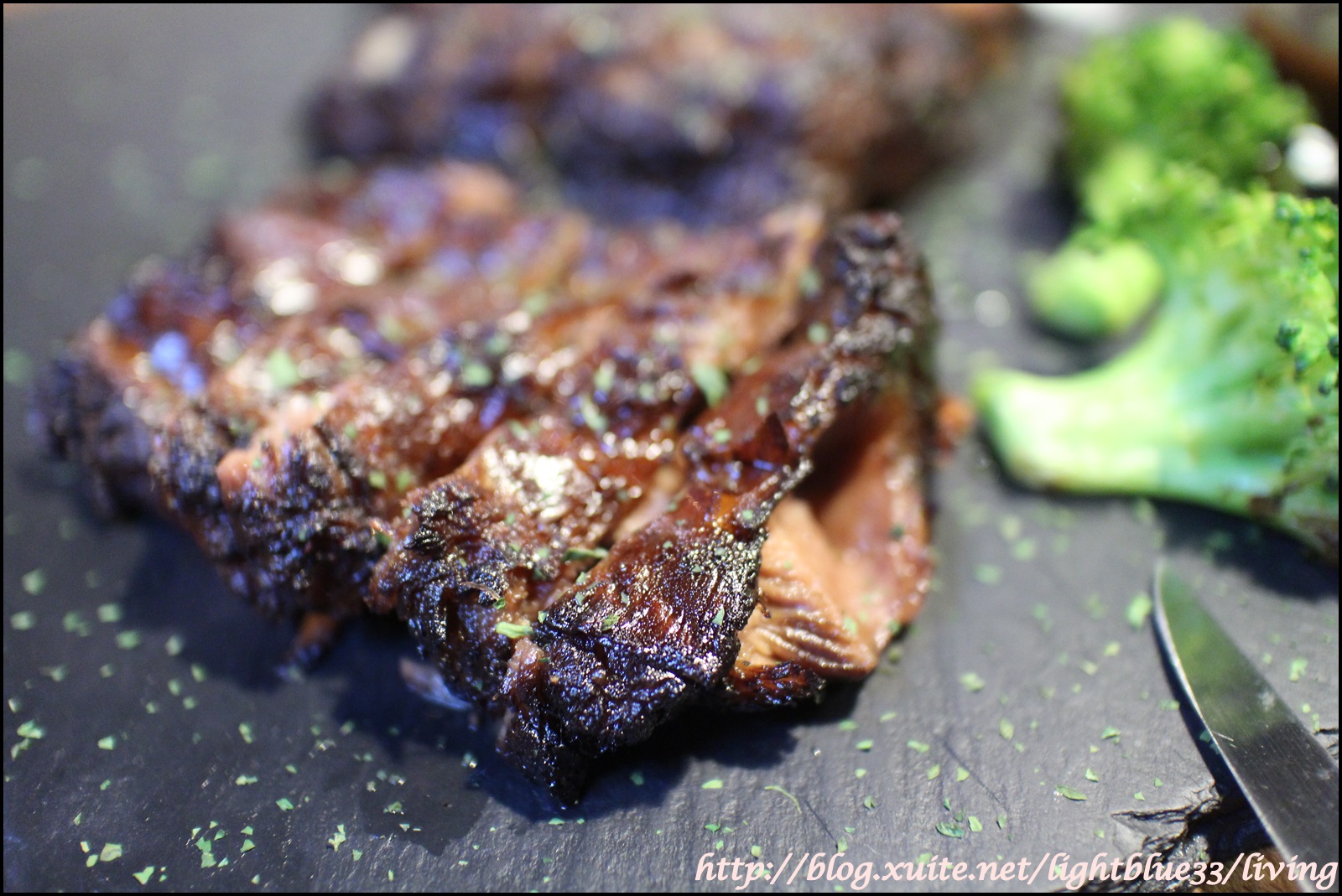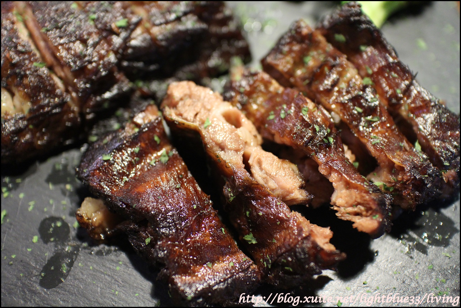 而骨頭上的肉則是軟嫩的口感,但是又不會失去咀嚼牛排的口感,尤其跟烤得脆脆的外皮有令人驚喜的對比