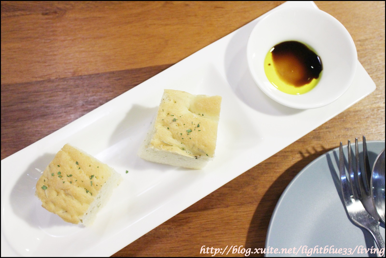 餐前麵包用初搾橄欖油加酒醋跟一點鹽巴,麵包很鬆軟