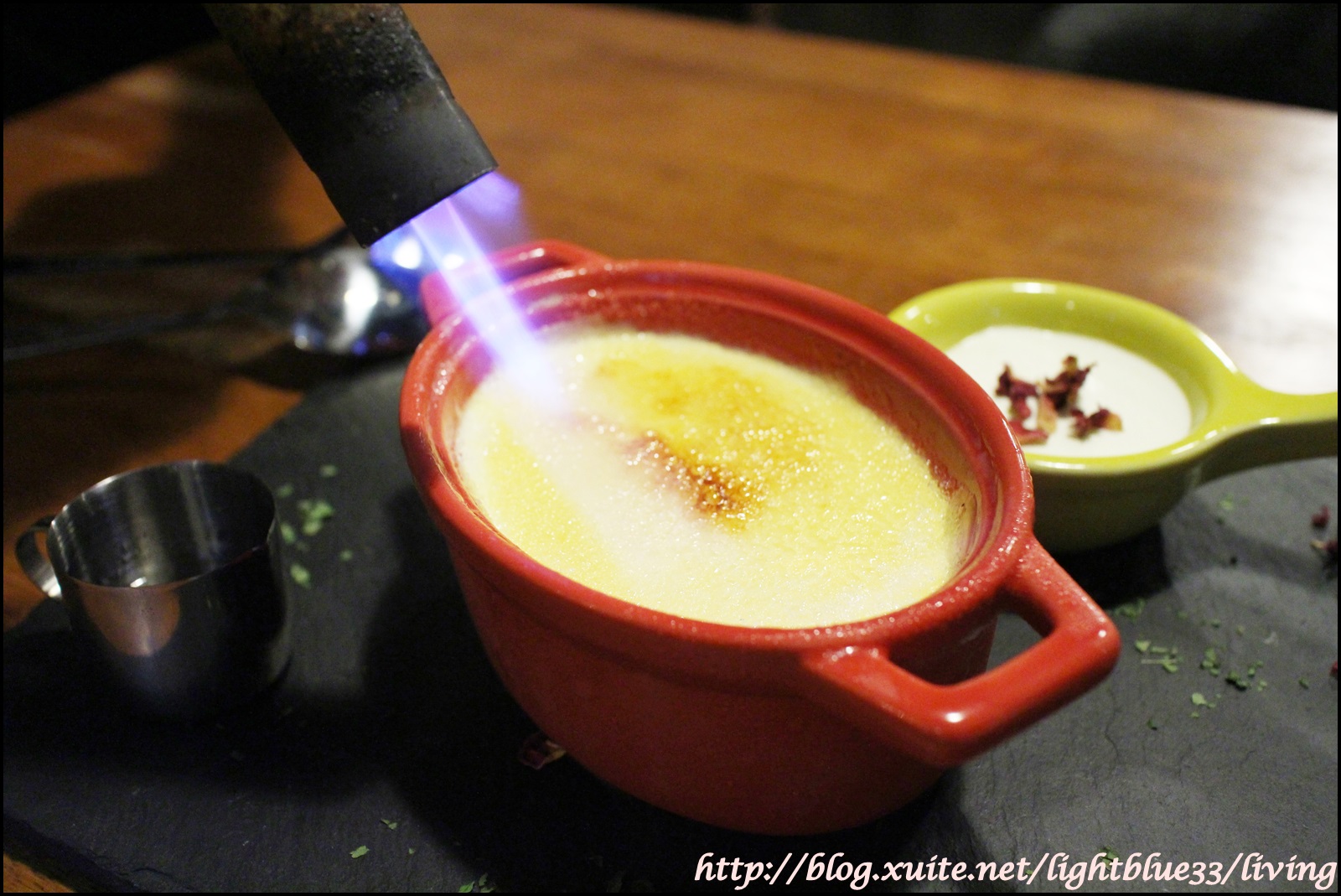 最後當然要來一份甜點當作ending啦,這是法式烤布蕾,店家會在上桌後現場用噴槍炙燒,看著糖粉漸漸焦黃的同時也傳來甜甜的香味,還沒吃就已經讓人流口水了