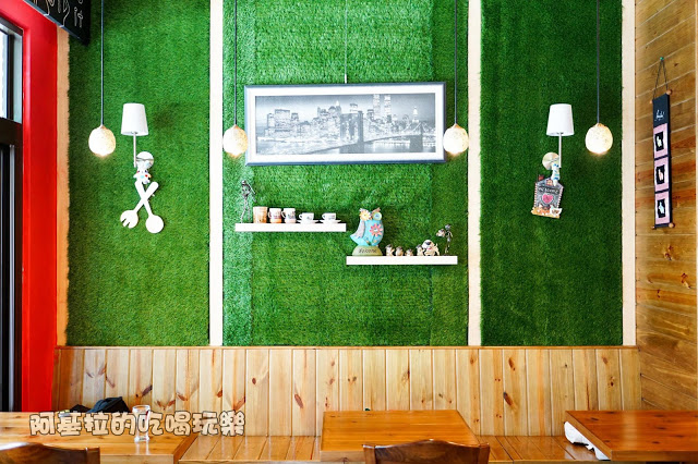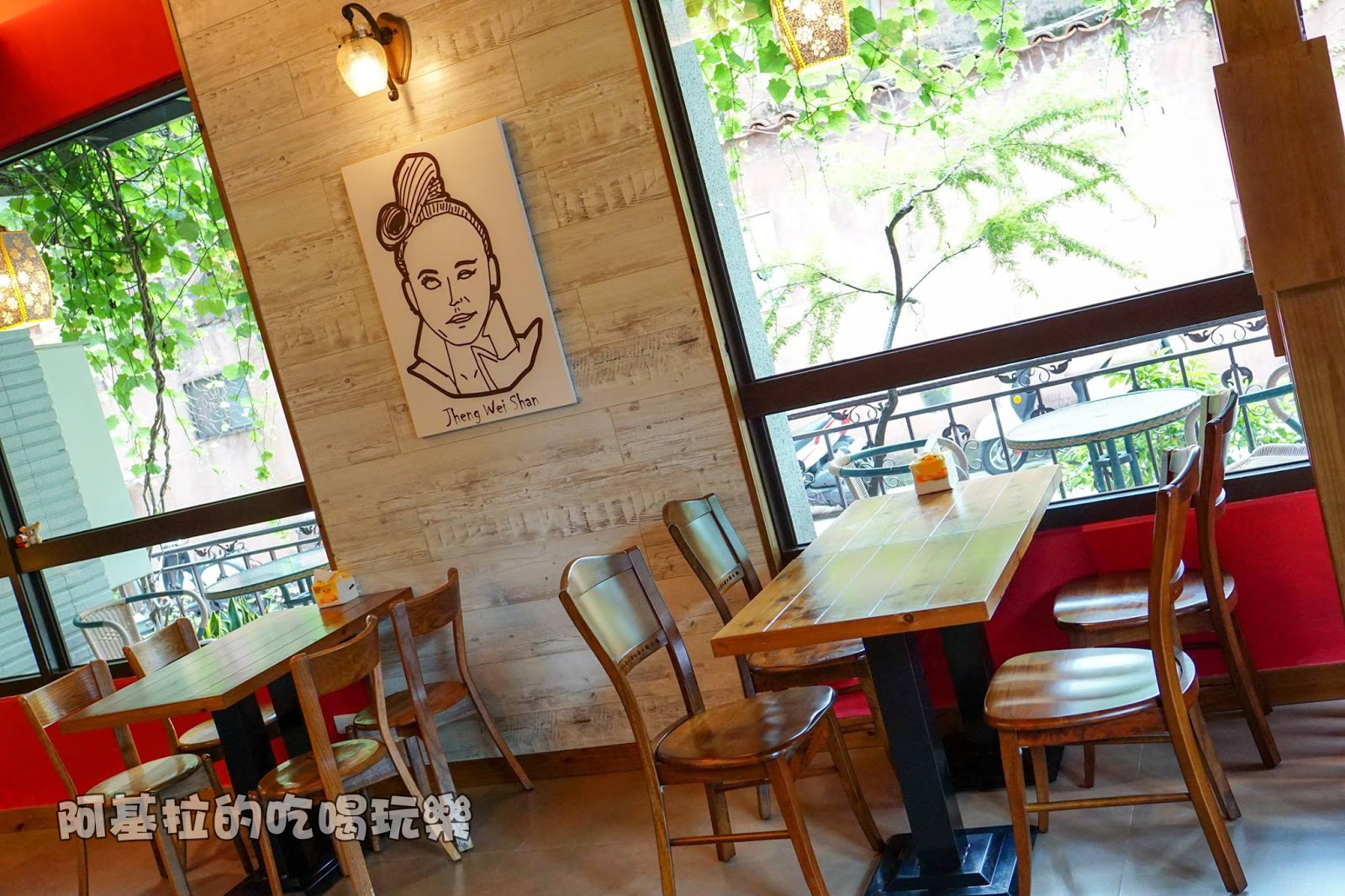 ▲裡面的桌椅多半是木頭的材質,搭配紅色和緣色的牆面,整體的色調帶有一點熱帶國家的建築風情。