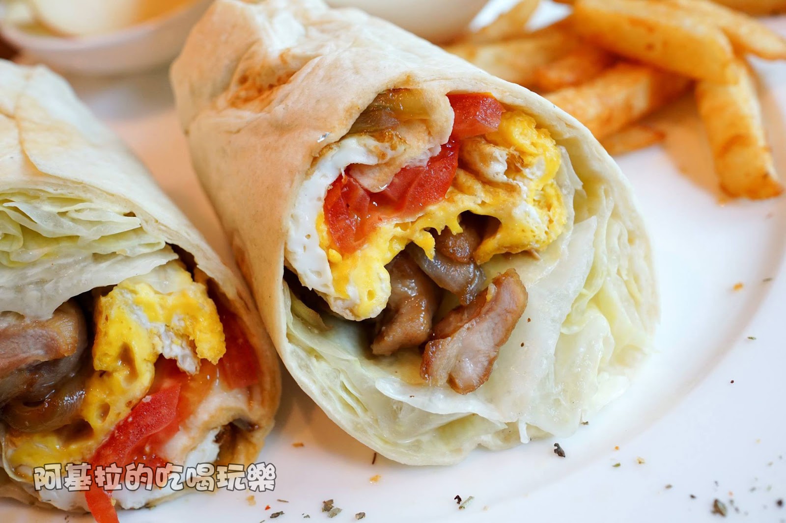 ▲這個墨西哥捲很好吃,裡面有包「生菜、蕃茄、煎蛋、洋蔥、雞腿肉」,餅皮的口感和食材的味道結合,加上一點特製醬汁,吃起來鹹辣爽口。