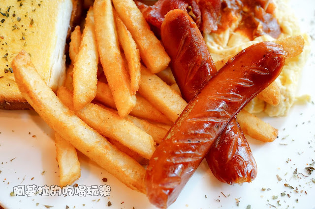 ▲薯條酥軟香綿,德式香腸鹹香彈牙,沒有油膩感,標準的好吃口感。