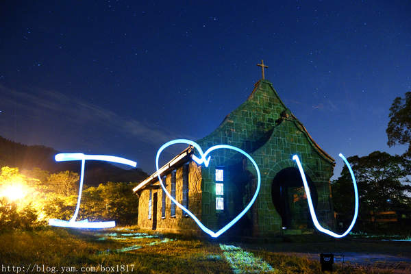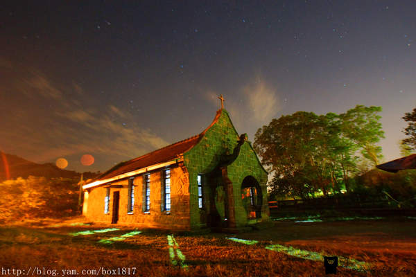 來到桃園復興基國派老教堂已是夜晚時分,