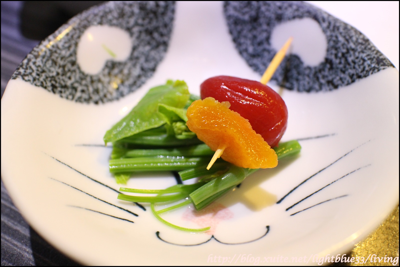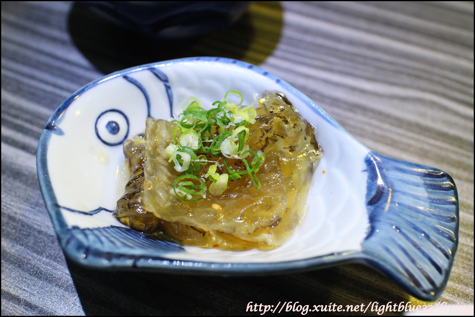 這次是店家搭配菜色內容,所以只要放空等上菜就好了,這是丼飯所附的小菜兩種之一,魚皮吃起來Q彈中帶一點脆度