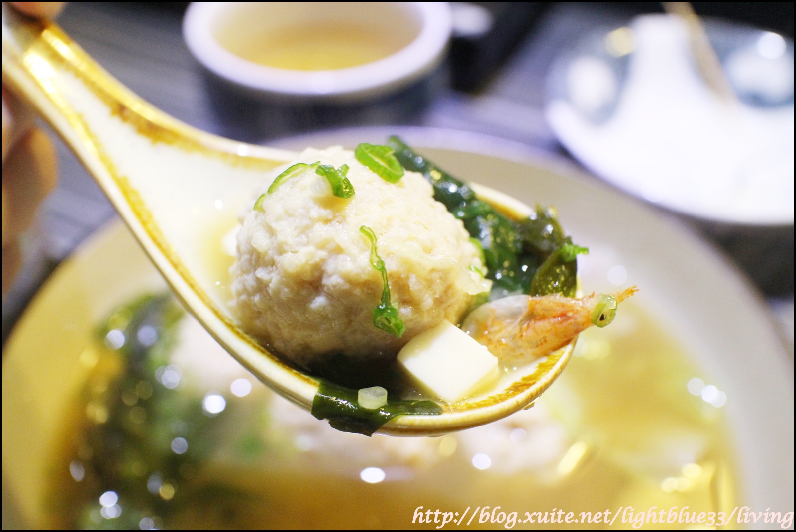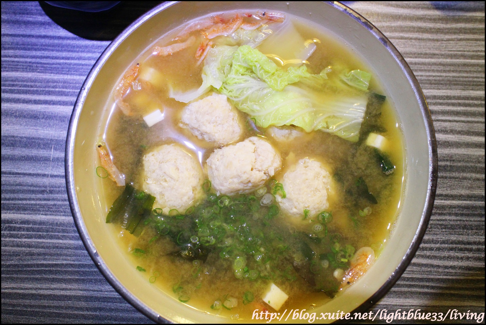 雞肉丸使用雞腿肉跟雞軟骨、山藥一起揉打現捏,所以吃起來有雞腿肉甜味跟雞軟骨的微脆口感,山藥則是增加了雞肉丸的黏性跟溼潤度,這一碗還可以吃得到櫻花蝦、白菜、海帶、豆腐,味道豐富而不會只有味噌的死鹹味,在這種微涼的天氣喝來最適合,不過如果溫度只有溫溫的,如果可以再熱一點會更讓人開心,要點的人可以請店家再熱一點
