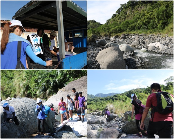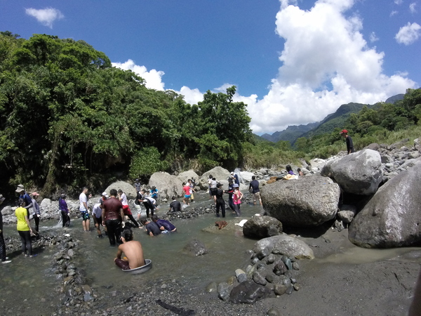 一行人跟著部落青年與耆老們坐上貨車、攀越過巨石來到比西里岸成功鎮富家溪,這裡的水流十分湍急,水質也很清澈。