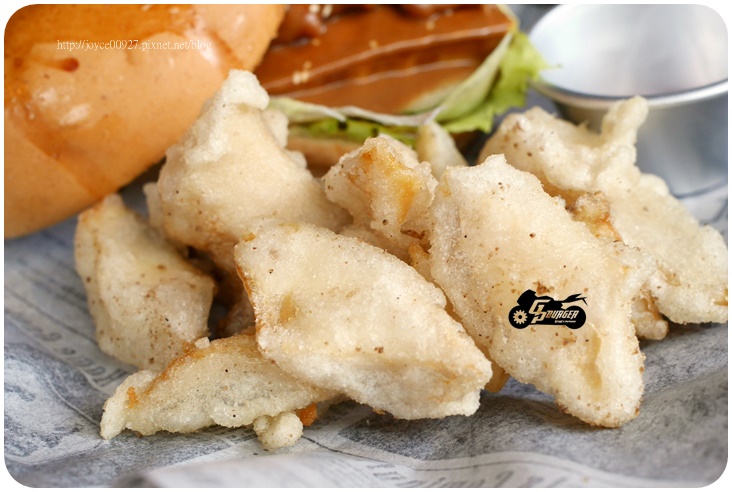 香菇胡麻豆腐堡 搭配的炸物配餐適杏鮑菇