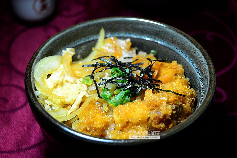 炸到外層酥脆內層保留肉汁的豬排,對切加入蛋液在灑上些許蔥花和海苔絲上桌。浸泡到底層洋蔥蛋液的外皮多了甜鹹滋味,將三種食物一起放入嘴裡,味道組合得很恰當!
