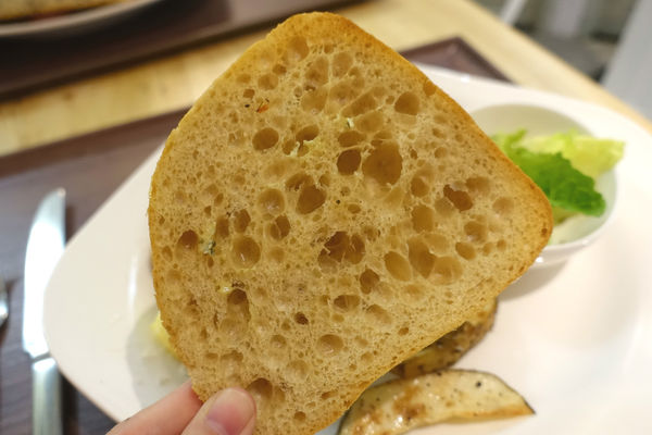 白吐司的部分則有像是法國麵包的嚼勁,但沒那麼乾~