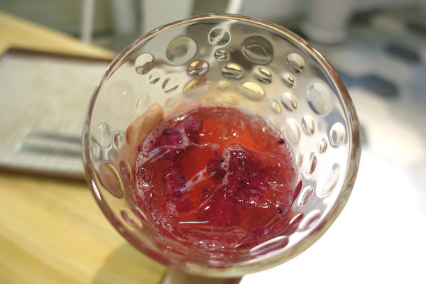 倒入氣泡飲之後,李子和火龍果兩款不死甜的水果迸出火花,