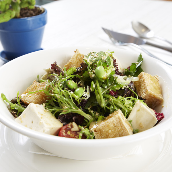 用炸豆腐與嫩豆腐組合成而成的開胃菜,搭配各式什錦蔬菜,佐以有「東方的起司」之稱的豆腐乳,加以調味,讓食材更添神韻!創意的發想,讓西式的開胃前菜也可以很有東方味!