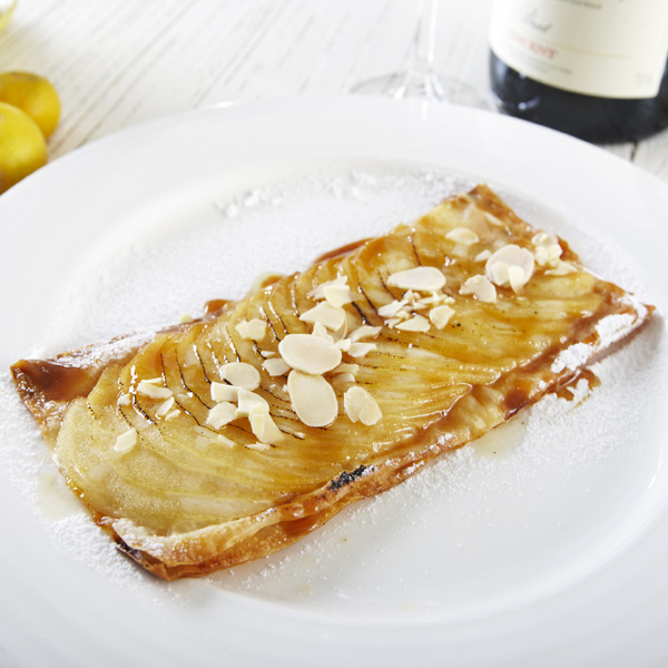 以Filo低脂千層酥皮作為基底,鋪上帶有酸甜香氣的富士蘋果,佐以焦糖醬與香草醬烤至金黃酥脆,口味清爽不甜膩。