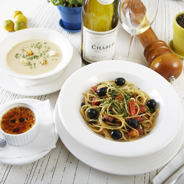 以地中海飲食的要角蕃茄,搭配黑橄欖提點口感,以特級橄欖油拌炒之後酸度與橄欖香味均衡融合,帶來濃郁地中海風情的經典風味。