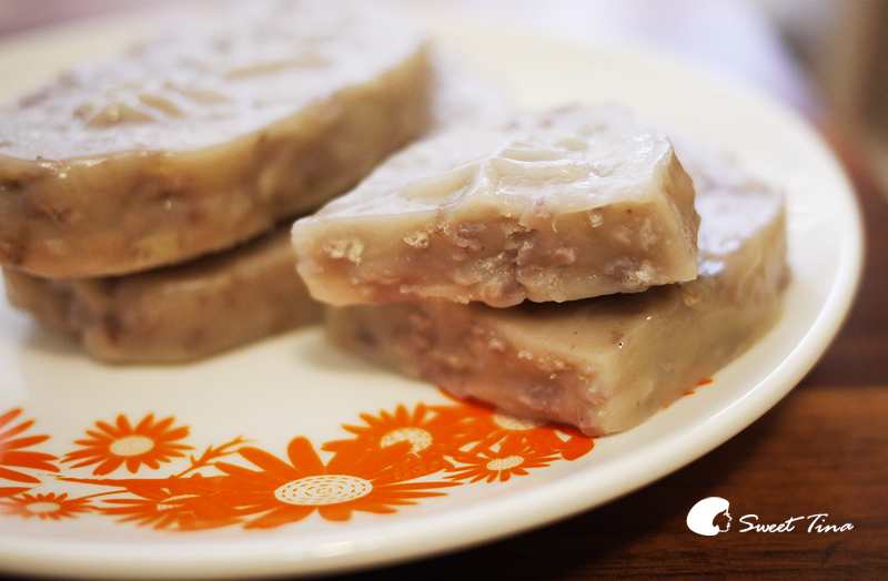 Tina本身也挺愛吃芋頭的,這款芋頭糕是以大甲芋頭取代了蘿蔔,是Tina很喜歡的一款哦,口感上和蘿蔔糕很像,但咬下去後確是蘊含芋頭在裡頭。