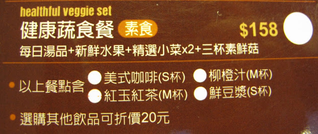 素食菜單有鬆餅、沙拉、樂活風味餐、飲料、、等可選擇