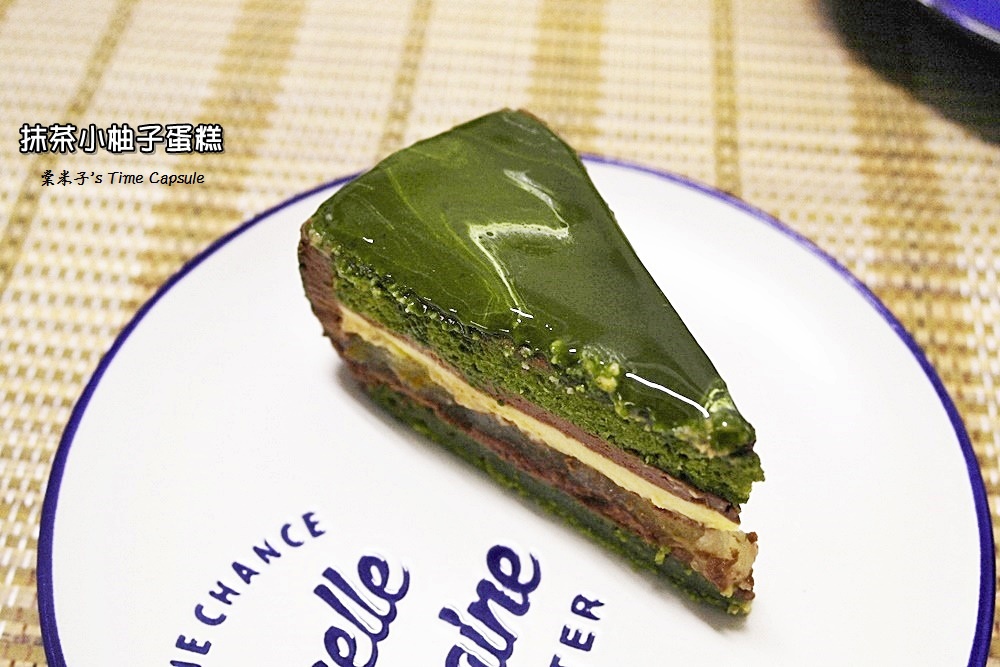 抹茶、巧克力、柚子果凍一層層堆疊而上,