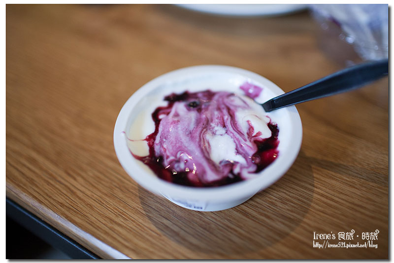 藍莓果醬優格是給小孩吃的,優格本身無糖,靠的是藍莓果醬的甜味,要多甜自己斟酌。