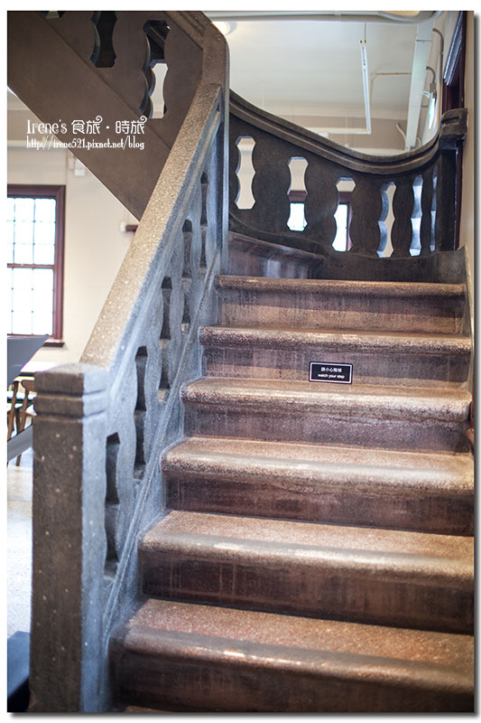 磨石子材質的樓梯面加上鏤空的造型扶手。