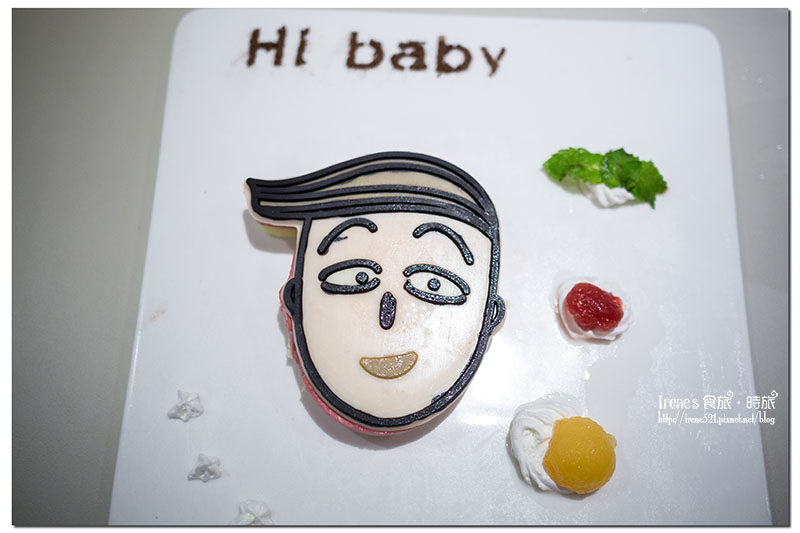 盤子上有著花輪最愛說的口頭禪:OH BABY~。