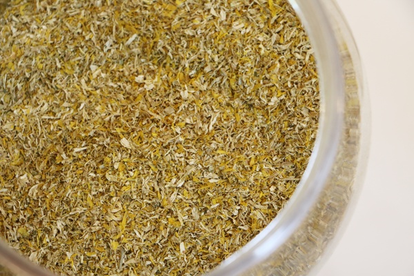 這是金英翠茶所使用的菊花,聞起來有淡淡的清香以及甘草的味道,很特別的這裡只有花瓣,因菊花花蕊易有農藥殘留的問題,所以以較高人工成本只採收金英菊花花瓣部份,就是要讓客人喝的安心啊!!