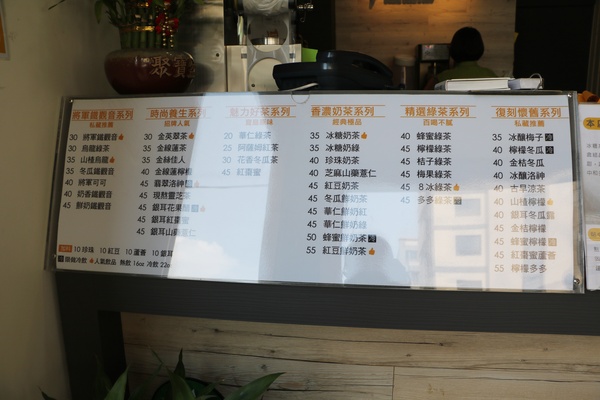 櫃檯上的招牌標示各式草本飲品,有將軍鐵觀音(即靈芝鐵觀音),時尚養生、魅力好茶、香濃奶茶、精選綠茶與復刻懷舊系列,精選靈芝、紅棗、菊花、銀耳、洛神、山楂與紅豆等養生素材,只為一杯好茶。價格超平價的,500cc養生飲品從$20~$55不等。不分價位的,只要買五即送一,包括外送也是喔!!