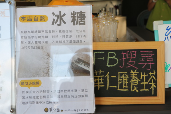 華仁匯不使用果糖調味,所有飲品的甜度都是店家自已以冰糖手工熬煮的,不但容易被人體代謝,搭配草本飲品也比較清甜好喝又對味。