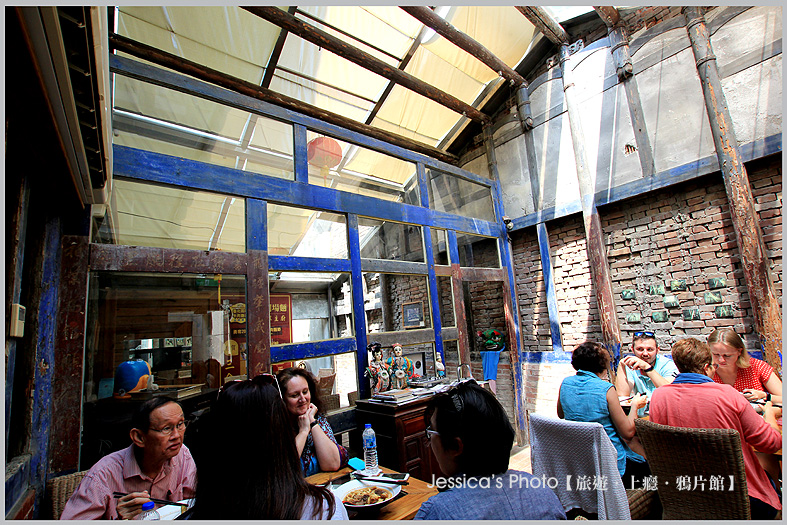 這間餐廳包含三進,從前到後,屬於狹長型的,是舊名"金玉成商會"的連三棟建築中間那一棟,屬於主屋,所以通常後代都不可能賣,外觀上多處使用家徽與姓氏,這是大戶人家才有的建築方式,內部屋頂有很多地方用透明玻璃窗,所以採光很好,很適合拍照。