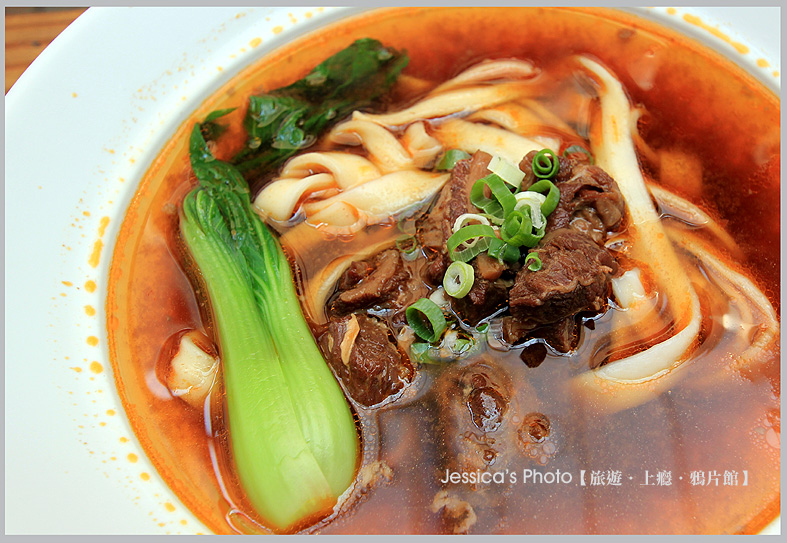 下圖就是以中藥材與香辣豆瓣醬熬煮的"紅燒牛腩麵"$209元,是店家招牌,看這湯頭就覺得超有味。