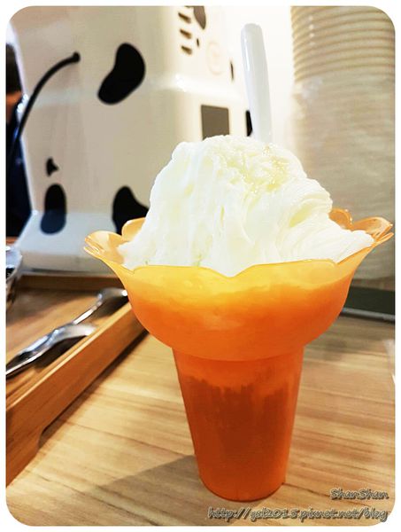 日月潭紅茶搭配牛奶雪花冰,紅茶本身不甜,配上雪花冰很剛好!溶化後像奶茶,好喝!杯子也很可愛呢!
