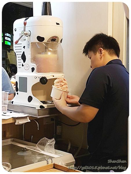 正在剉的這碗是西瓜雙響砲,一半紅肉一半小玉的西瓜雪花冰相當有辨識度!下次想試試看!