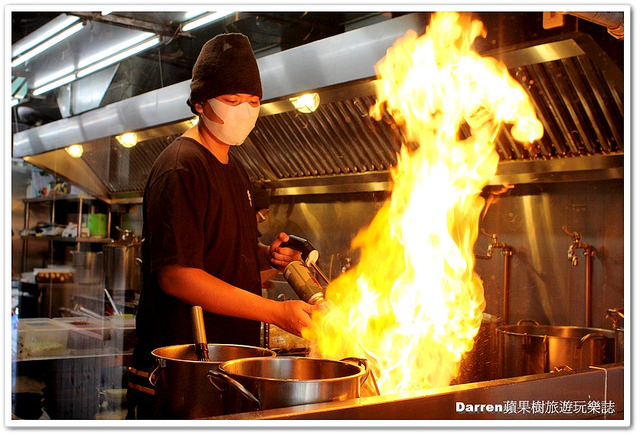 最大特色就是1300度高溫炙燒拉麵炎視覺效果夭壽讚,大火炙燒迅速將油脂和高湯融合喝起來濃郁焦香