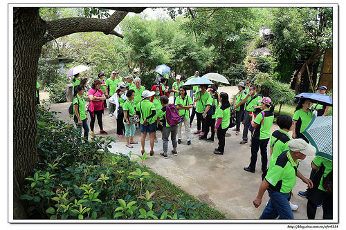 後方正好有團客在導覽,介紹園區內的香草植物,像是澳洲茶樹等。