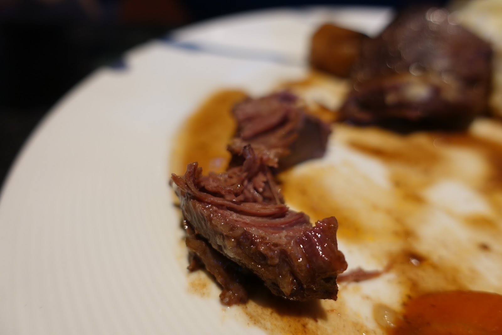 另一個我們點的主菜燉牛頰肉嚐起來入味而軟透,搭配著烘蛋與馬鈴薯泥相當豐盛,紮實的烘蛋混入火腿丁增加層次感與香氣。