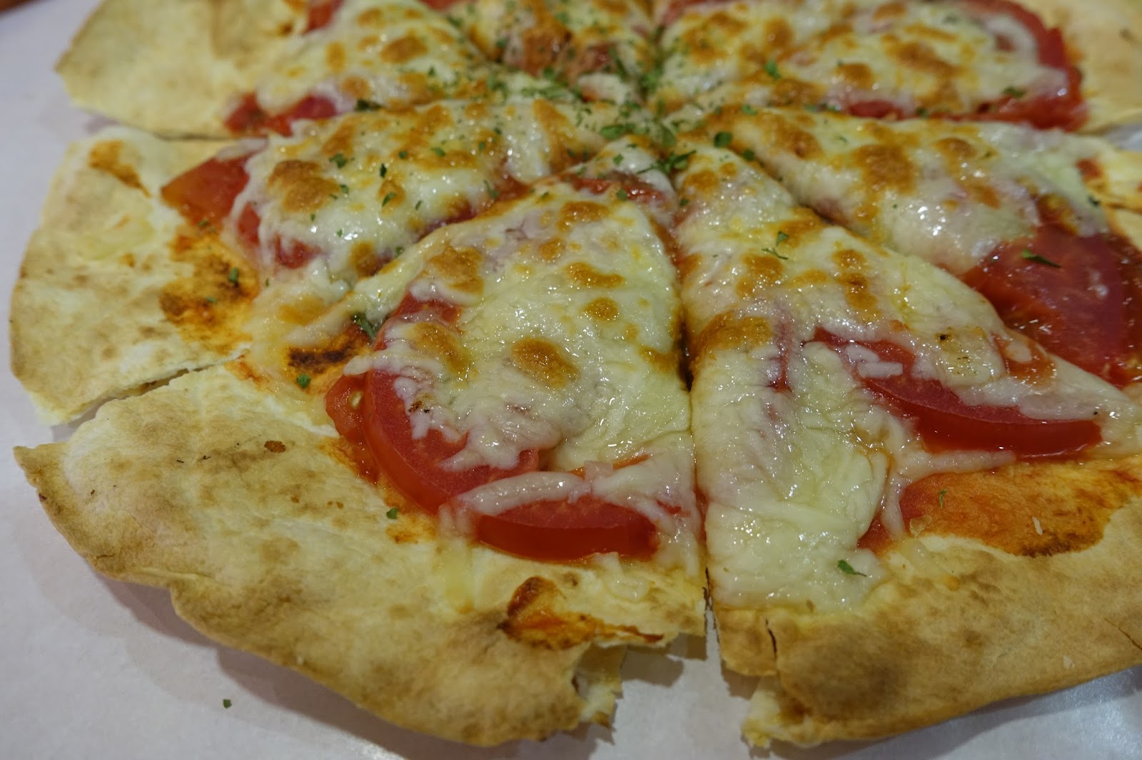 友人點的披薩也很好吃,單純的番茄與起司配料,餅皮的口感Q軟帶著點脆度,份量頗大,一個人要吃完會有些吃力。