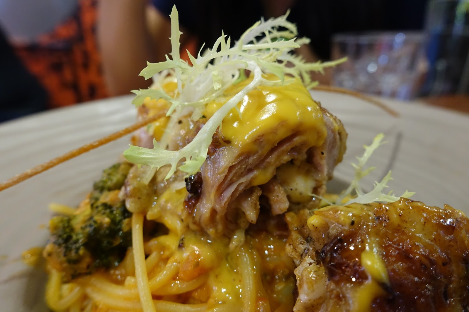 這份奶油茄汁辣味雞腿捲義大利麵帶著辣度吃起來相當過癮,濃郁的番茄奶油醬汁裹滿義大利麵,雞腿上的起司醬也有很大的加分,雞腿的肉質新鮮好吃,難怪我看到很多人都點這道雞腿捲,看別桌點的雞腿捲是搭配著燉飯吃,也很誘人。