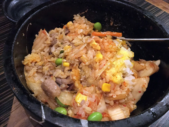 主打創意和風料理,菜單上有各式生魚片握壽司的選擇、烤物、烏龍麵等,除此之外也有韓式的食堂石鍋拌飯,上桌前已經先幫我們拌好了,整體味道平凡但牛肉吃得出來很新鮮。